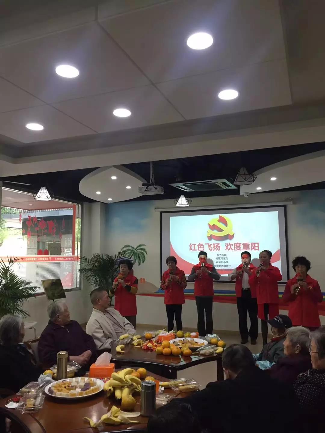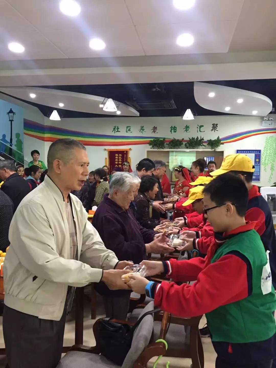 接着就是咱们文艺汇演时间啦,司徒街小学的两名五年级女生给老人们带来了古筝合奏《渔舟唱晚》,朝阳门社区的白玉兰艺术团叔叔阿姨们给老人们表演了四个节目,舞蹈《天足少女》,葫芦丝合奏《月光下的凤尾竹》,朗诵《中华颂》,大合唱《最美的歌唱给妈妈听》,阿姨们舞姿优雅,歌声柔美,比年轻人还厉害。司徒街小学的学生们为老人们送上了重阳糕,祝愿老人们平安健康!